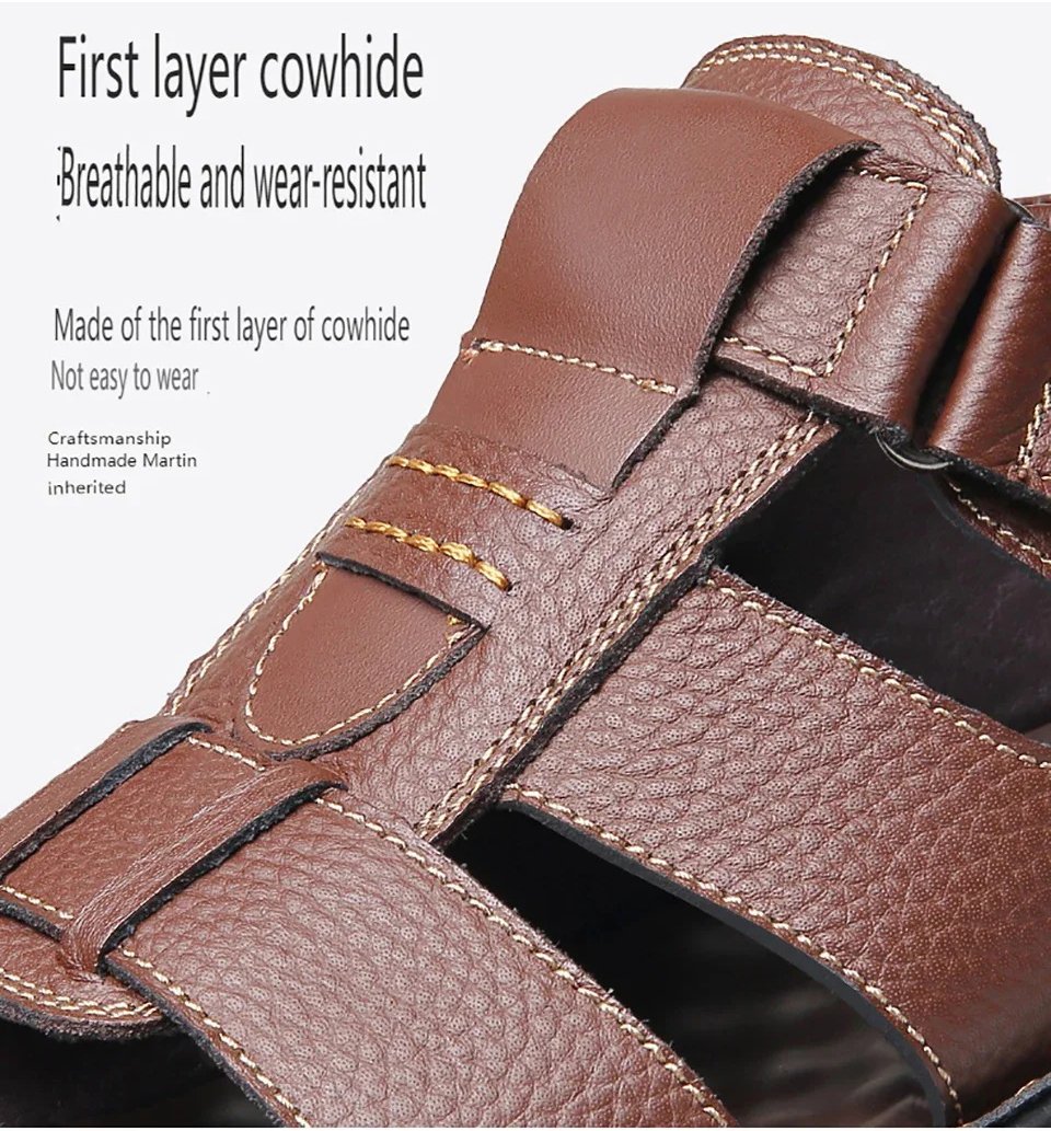 Italian Style Open shoes Outdoor Ergonomic Non-slip Thick-soled Cowhide Leather Men Sandals